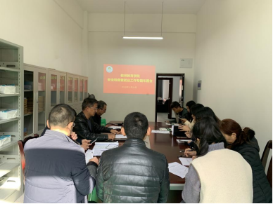 首先,副经理毛华平传达了学校安全工作会议精神,党总支副书记李中春介绍了学院师范本科生的就业、创业情况。副经理蒋文峰、科室主任姜友嫦、屈勇、高曼等各参会人员对师范技能培训中心、物理实验室、学院办公室、员工宿舍的安全隐患等问题进行了一一梳理汇报,对师范本科生的就业难度、存在的问题及如何提高就业率等问题进行了认真讨论。