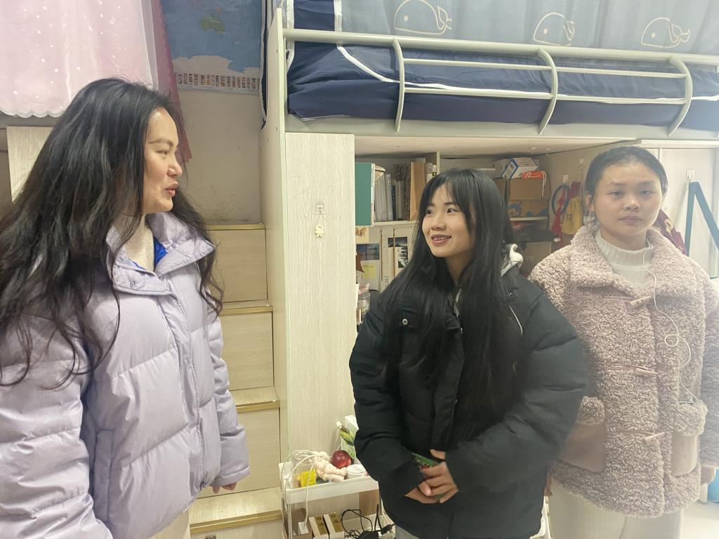 在员工宿舍,老师们与同学们深入交流,了解同学们新学期的学习、生活情况,询问同学们遇到的困难和问题,要求同学们遵守学校疫情防控要求和员工管理规定,保持规律作息,认真学习专业知识,增强自我管理能力,提高自身素质。